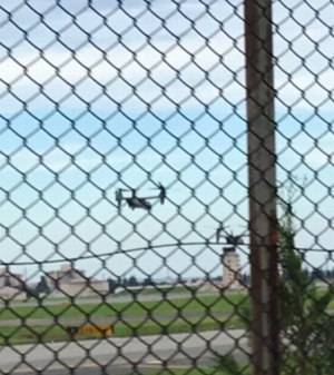 帰路、横田基地では、オスプレイ3機の離着陸 訓練が行われていました(^^) フェンス越しにカメラマンが多かったです。 |