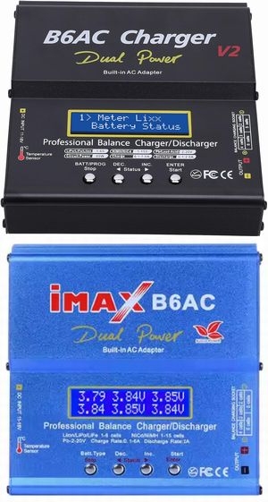 B6ACと呼ばれるマルチ充電器で、本来は模型用 バッテリーの充電器です。 ちょっと配送に問題がありまして・・・ 密林さんのお力により、1つ無償プレゼントと なりましたので2個同時に充電ができる様にな りました。 管理人が購入したのは、DC12V入力の他、AC 100Vも利用できるAC仕様です。 OEMなのか、色々なメーカーから色々なパッケ ージで販売されている様です。 ACプラグはアース極付きなので変換アダプタを 購入しました。 |