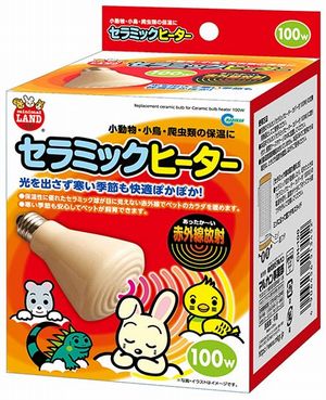 今まではマルカンの100Wセラミックヒーターを 3台のケージに1個ずつ付けていました。 (電気負荷は300W) 仕様的には、室温+15℃まで加温することが出 来ます。 |