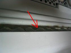 | 蓋の付け根にあるパッキンが、膨潤し ていて、波打っています。 またパッキン素材が油脂に侵されたの か、ベトベトしていました。 弾力(復元性)もありません。 |